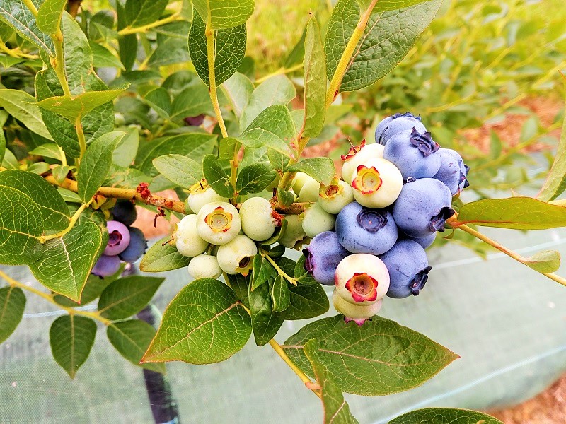 Contamos con 6 variedades de arándanos (Duke, Legacy, Brigitta, Aurora, Elliot y Centrablue) de maduración escalonada, para poder recoger fruta a lo largo de todo el verano y principio de otoño, de Julio a Octubre.
