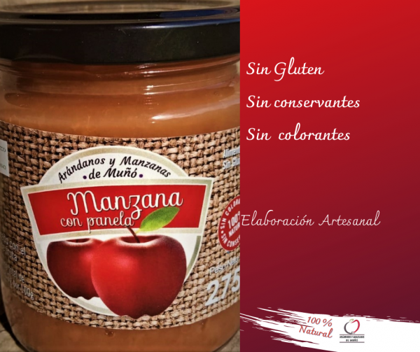 Manzana con panela: 95% Manzana- 5% Panela.(azúcar moreno integral resultado de calentar y evaporar jugo de caña de azúcar por métodos tradicionales, producto orgánico de origen 100% natural).